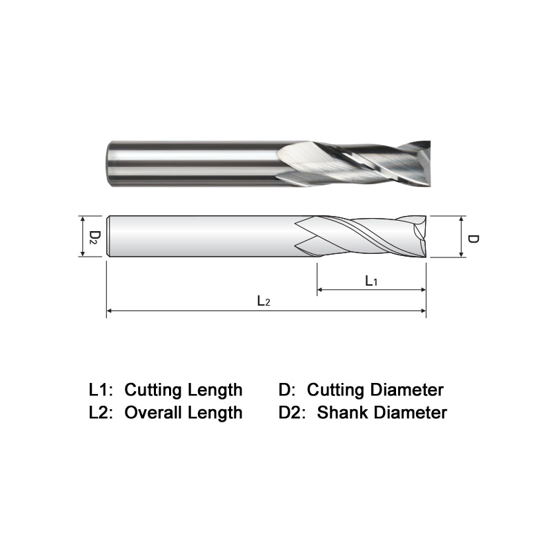 Endmill, Series EA302LS, Carbide, 1/4'' Dia, 2 FL, 1-1/2'' LOC, 6'' OAL, Uncoated Coated, 1/4'' Shank, Imperial Sizes