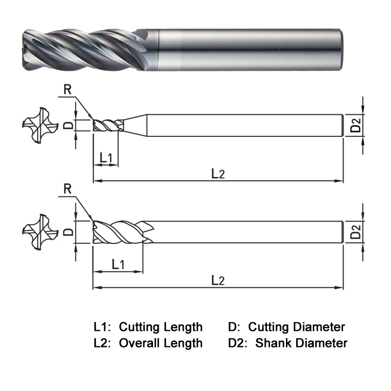 Endmill, Series VXR504, Carbide, 16mm Dia, 4 FL, 42mm LOC, 100mm OAL, AlCrN Coated, 16mm Shank, 0.53 lb, Metric Sizes