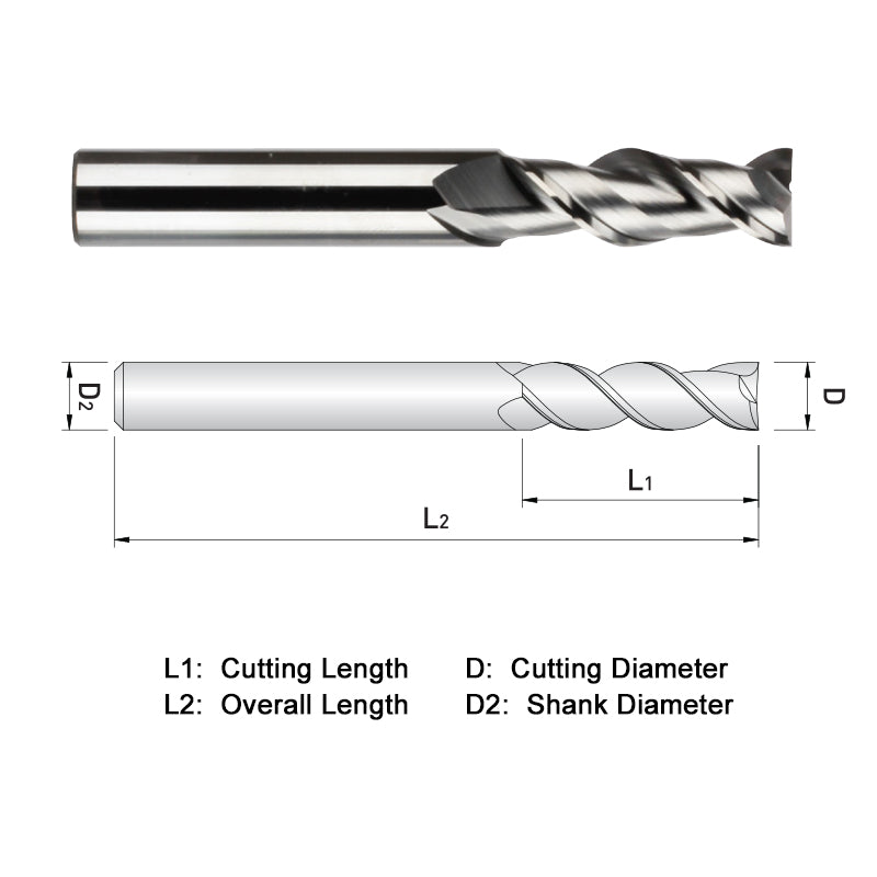 Endmill, Series WAE502A, Carbide, 1'' Dia, 2 FL, 1-1/2'' LOC, 4'' OAL, DLC Coated, 1'' Shank, Imperial Sizes