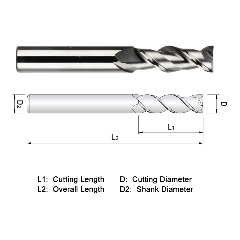 Endmill, Series WAE512A, Carbide, 1/8'' Dia, 2 FL, 3/8'' LOC, 1-1/2'' OAL, DLC Coated, 1/8'' Shank, 0.02 lb, Imperial Sizes