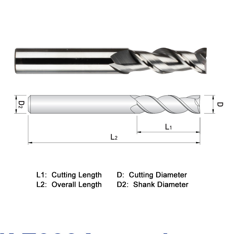 Endmill, Series WAE522A, Carbide, 1/4'' Dia, 2 FL, 1-1/2'' LOC, 4'' OAL, DLC Coated, 1/4'' Shank, 0.09 lb, Imperial Sizes