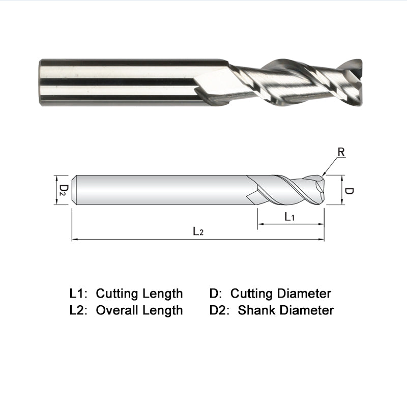 Endmill, Series WAR312A, Carbide, 1/4'' Dia, 2 FL, 3/4'' LOC, 2-1/2'' OAL, Uncoated Coated, 1/4'' Shank, Imperial Sizes