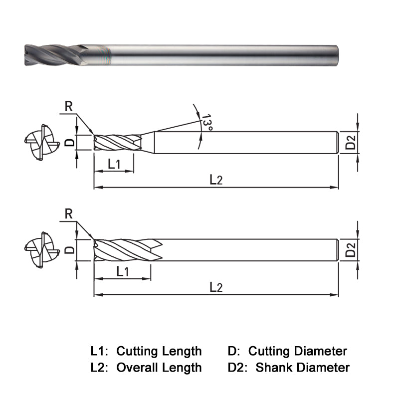 Endmill, Series WGR504, Carbide, 12mm Dia, 4 FL, 30mm LOC, 130mm OAL, Diamond Coated, 12mm Shank, 0.45 lb, Metric Sizes