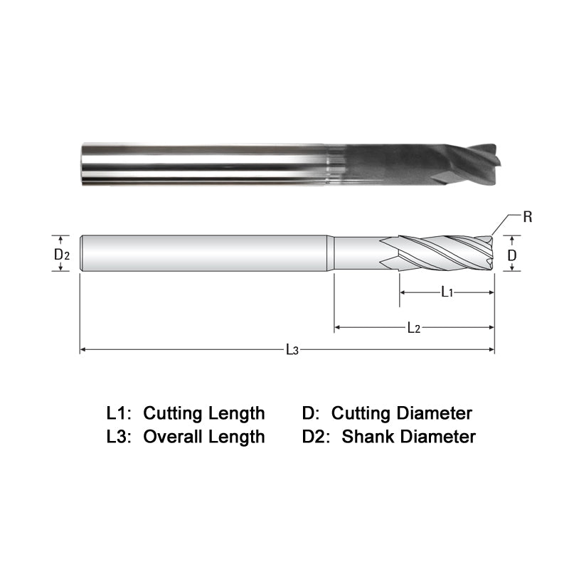 Endmill, Series WGR504A, Carbide, 3/32'' Dia, 4 FL, 3/8'' LOC, 1-1/2'' OAL, Diamond Coated, 1/8'' Shank, 0.01 lb, Imperial Sizes