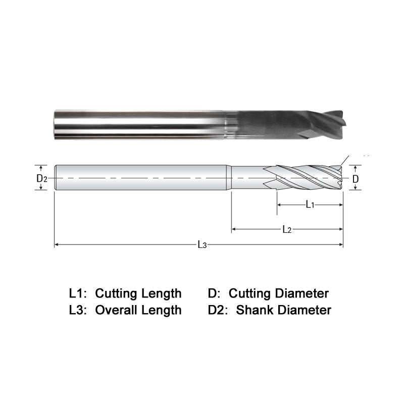 Endmill, Series WGR534A, Carbide, 1/2'' Dia, 4 FL, 1/12'' LOC, 6'' OAL, Diamond Coated, 1-1/2"mm Neck Length, 1/2'' Shank, 0.63 lb, Imperial Sizes