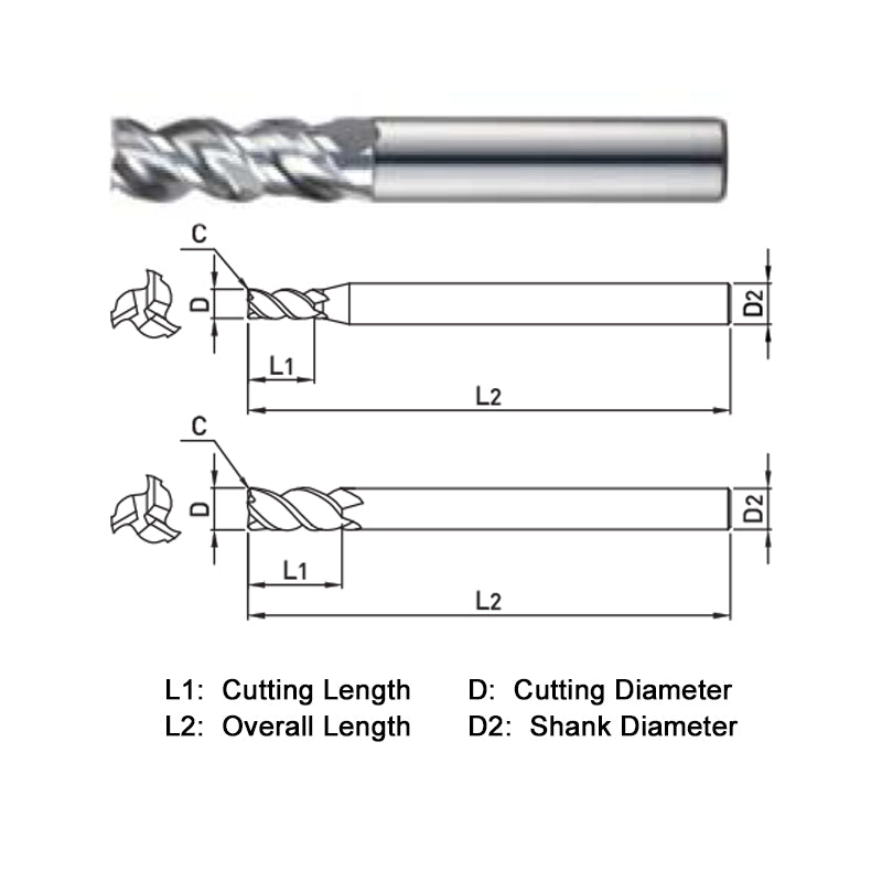 Endmill, Series XCC503, Carbide, 12mm Dia, 3 FL, 30mm LOC, 75mm OAL, TiAlN Coated, 12mm Shank, 0.24 lb, Metric Sizes