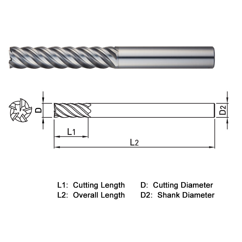 Endmill, Series XE515, Carbide, 8mm Dia, 5 FL, 30mm LOC, 75mm OAL, TiAlN Coated, 8mm Shank, 0.11 lb, Metric Sizes