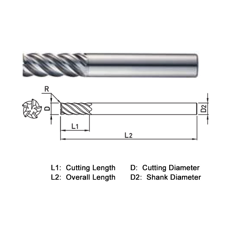 Endmill, Series XR505, Carbide, 10mm Dia, 5 FL, 22mm LOC, 72mm OAL, TiAlN Coated, 10mm Shank, 0.17 lb, Metric Sizes