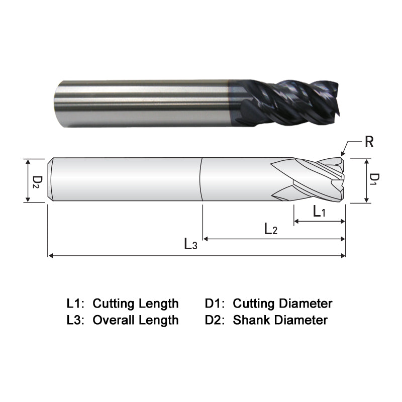 Endmill, Series XR514A, Carbide, 1'' Dia, 4 FL, 1-1/2'' LOC, 4'' OAL, AlTiN Coated, 1'' Shank, Imperial Sizes