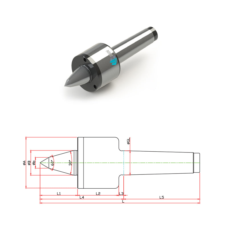 • NC HIGH SPEED ROTATIONAL- MINIMIZES BITE INTERFERANCE- LIVE CENTER • Morse Tapers Available - No. 3 - No. 5 • Special bearings for high speed rotation • Run Out 0.00012" or 0.003mm