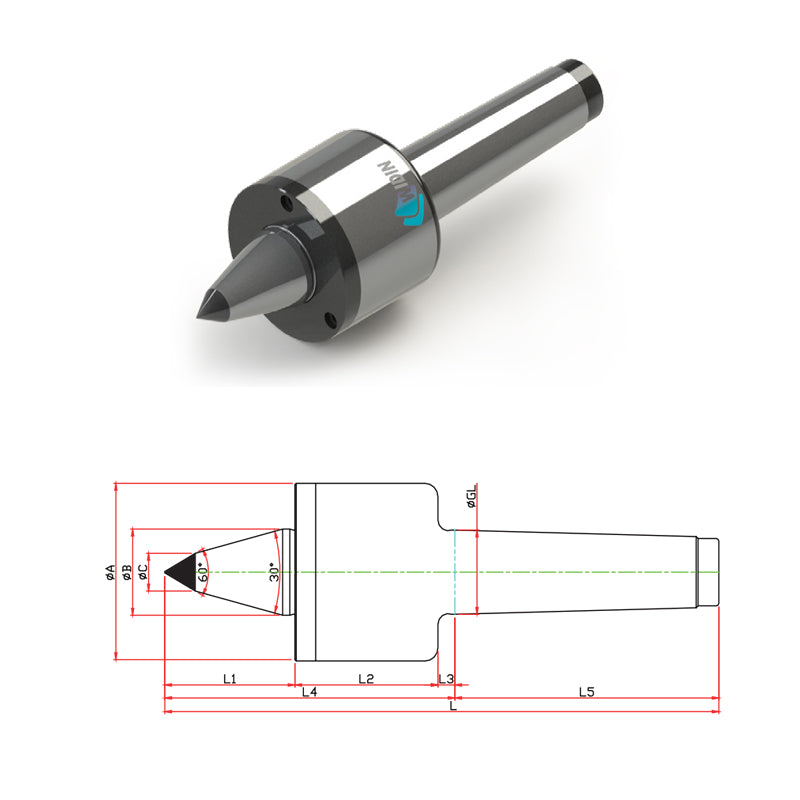 • NC HIGH SPEED ROTATIONAL - MINIMIZES BITE INTERFERANCE & CARBIDE TIPPED- LIVE CENTER • Morse Tapers Available - No. 3 - No. 5 • Special bearings for high speed rotation • Run Out 0.00012" or 0.003mm