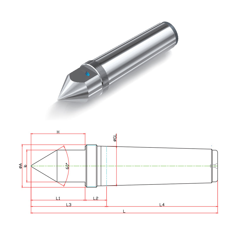 • SPANNER - HALF TIPPED DEAD CENTER WITH NUT • Morse Tapers Available - No. 1 - No. 5 • Minimized BITE interferance • Run Out 0.00012" / 0.0002" or 0.003mm /0.005mm