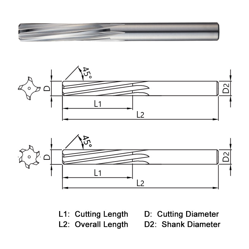 • HELIX FLUTE REAMER, 4-6 FLUTE, UNCOATED